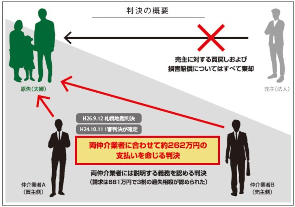 札幌地裁平成26年9月12日判決は、売上げ仲介業者に対し、宅地建物取引業法35条1項14号、同法施行規則16条の4の3第2号が直接定めているもの(宅地が土砂災害警戒区域内にあるか否か)にとどまらず、将来指定される可能性があることについても説明義務があるとして仲介業者の調査・説明義務違反を認めた事例です。