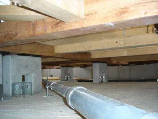 出典:J建築システム(株) グリッドポスト(GP)基礎工法施工マニュアルより一部編集/床下配管例