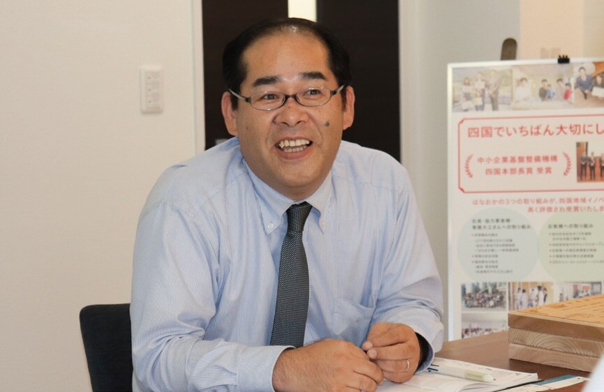 「四国でいちばん大切にしたい会社大賞」のはなおかさんは、企業が大切にすべき五つを実践していることを意味します。その五つとは①社員とその家族を大切にする②外注先・下請け企業の社員を幸せにする③顧客を幸せにする④地域社会を幸せにし、活性化させる⑤自然に生まれる株主の幸せ。これはまさに、顧客に感動を届けるためにはなおかさんが実践している会社のあり方そのものです。