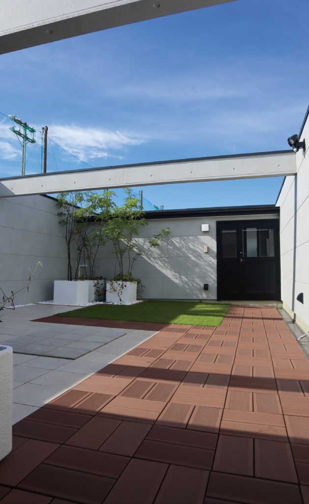 テラスの壁を高めに設け、家族のプライベートな空間として提案