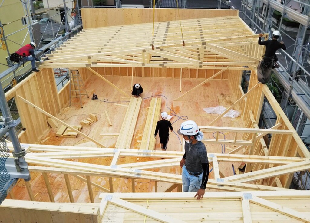 しかも、屋根・床トラスとも2×4工法と同様、工場製作したものを搬入するため、現場での加工が要らず工期短縮になる、廃材が出ないなど施工面でのメリットも大きいのです。
