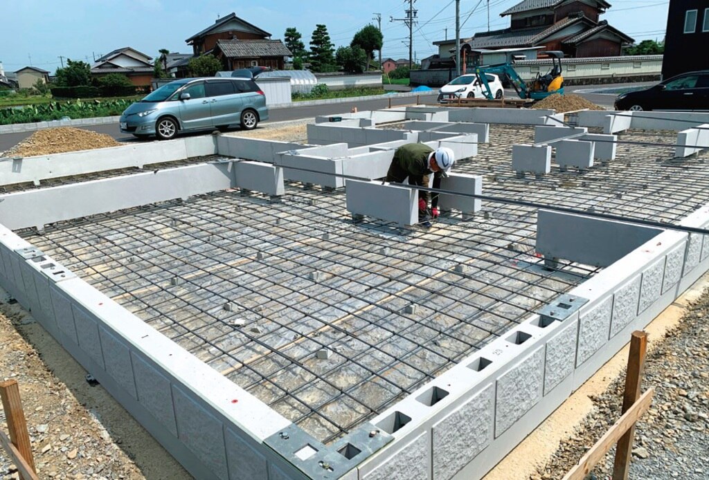 「いいことは何でも採用する」という同社は、昨年から基礎の内製化にも着手。ジャパンホームシールド(JHS)が提案する新しい基礎工法「アイランドベース」を東海エリアで初めて導入しました。