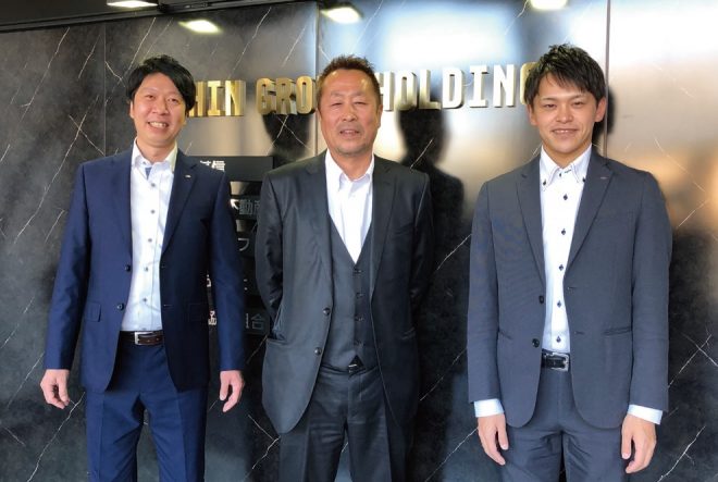 左からJHS基礎事業営業部 小田島、基信 髙橋社長、JHS中部支店 水野