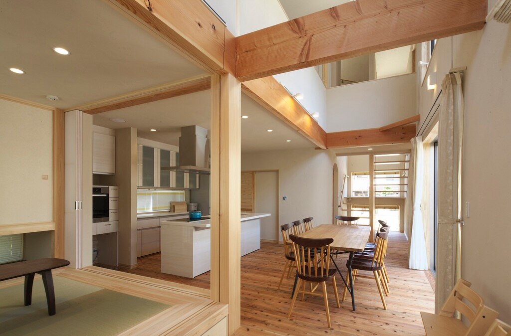 築8年になるという早稲田ハウスさんのモデルハウス「一日わが家」(新松戸モデルハウス)。玄関に足を踏み入れると、木の香りがふわっと広がります。「あえてスリッパを用意していません。どうぞそのままお上りください」。金光社長に案内していただいた通り上がり框を上ると、宮崎県産飫肥杉が生かされた床の感触が足裏から伝わりました。
