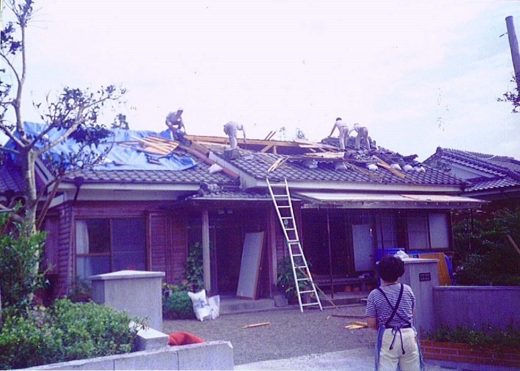 この台風でヤマサハウスさん(当時は山佐産業)が建てた住宅の約3千棟、それまでの累計建築棟数の半数に当たる住宅に何らかの被害が出てしまいました。一日でも一刻でも早くお客様の家を復旧しなければと、全社一丸となって作業にあたります。近隣の住民の方は、ヤマサハウスさんの迅速な対応を羨ましがってこの一言を漏らしたのです。