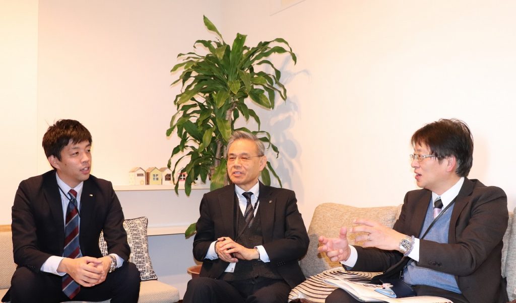 左よりJHS渡邉、ヤマサハウス様 吉田専務、森常務